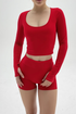 Red Cotton Jersey Long Sleeve Deep Scoop Top