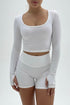 White Cotton Jersey Long Sleeve Deep Scoop Top