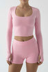 Pink Cotton Jersey Long Sleeve Deep Scoop Top