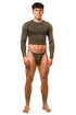 Long Sleeve Dark Green G-String Set