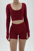 Dark Red Cotton Jersey Long Sleeve Deep Scoop Top